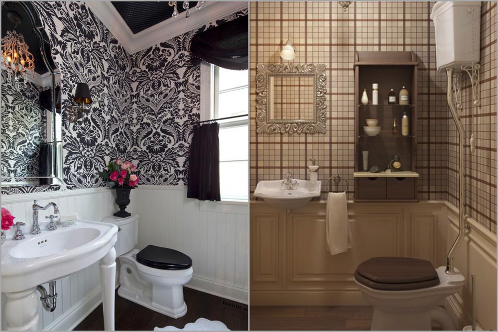 Варианты комбинирования обоев в интерьере туалета