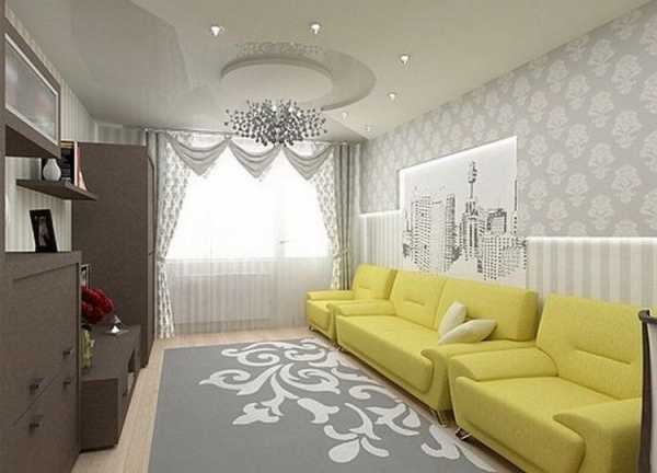 Желтый и серый цвета в интерьере гостиной 2019. Фото