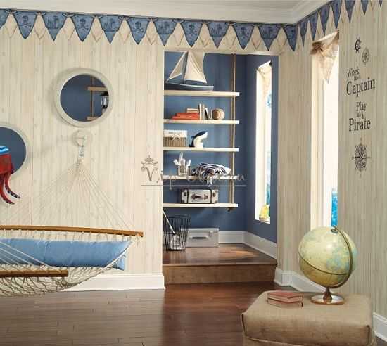 Виниловые на флизелиновой основе обои KS2420 из коллекции Cool Kids Fresco Wallcovering с наклейками по морской тематике.