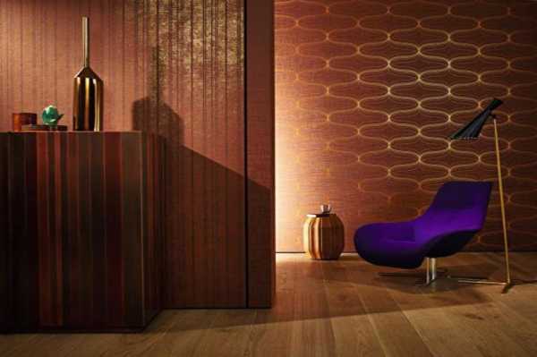 Тканевые обои с флизелиновой изнанкой выглядят действительно роскошно, хоть и не отличаются практичностью. Велюровые, фетровые, джутовые, жаккардовые полотна притягивают пыль и быстро впитывают запахи, поэтому это, скорее, «музейный» вариант отделки. Для жилых помещений больше подойдут гладкие льняные и вискозно-шелковые ткани – натуральные, гладкие и достаточно экологичные.