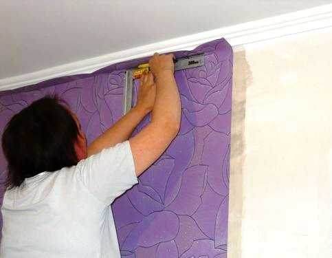 лее нужно обрезать полосу обоев таким образом, чтобы ее ширина на 10-15 сантиметров превышала расстояние до угла. Стену, угол и подготовленный отрезок обоев промазываем клеем, а после полотно прижимаем к поверхности и проклеиваем. Узкая полоса обрезанного края полотна заходит на смежную стену. Если из-за неровности угла и стены обрезанный участок неплотно прилегает к поверхности, его можно надрезать ножом или ножницами наискосок.