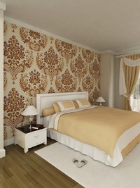 Этот стиль объединяет монументальность античных времен с изысканной роскошью эпохи Возрождения. Настоящую королевскую спальню можно обрамить обоями в теплых оттенках белого (сливочный, кремовый, айвори, светлый беж) с золотистым или серебряным растительным орнаментом, рельефом под гипсовую лепнину или мягкую кожу.