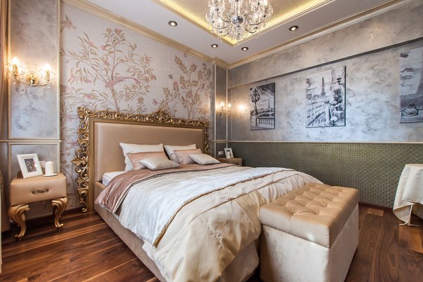 Совет! Тем, кому по душе гламурная спальня, но они не готовы к применению парчи, тюля, интерьерные профессионалы рекомендуют обратить внимание на фотообои.