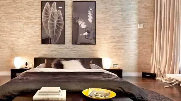 - Шёлковые — разновидность текстильных. Они двухслойные, в основе бумага или флизелин. Тканевый слой из шёлковых нитей (часто в комбинации с хлопком, джутом, растительными волокнами) или тканого полотна. Совершенно безопасны для здоровья, обеспечиваются естественное «дыхание» стен, обладают тепло- и шумоизоляцией. Они красивы и применимы в любом интерьере, минимализм и хай-тек — не исключение. Из недостатков: излишне впитывают влагу и запахи, накапливают пыль, цвет выгорает, цены на них высокие.
