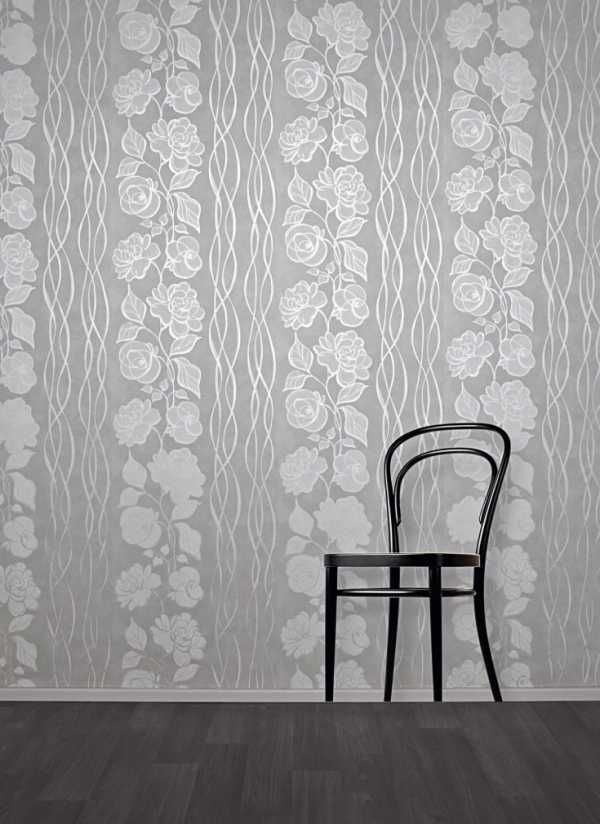 Все чаще можно заметить оформление стен светло-серым цветом с узорами, принтом. Особенность такого вида обоев в том, что переход очень плавный, стены создают спокойную и уютную атмосферу.