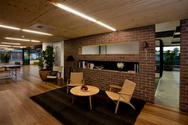 - в современных офисных центрах подобным образом оформляют коридоры, фойе и зоны отдыха, кабинеты, рассчитанные на большое количество сотрудников. Пример на фото.