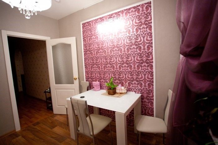 - Розовый привносит в оформление романтичные ноты. Можно сочетать его с лиловым, коричневым и белым.