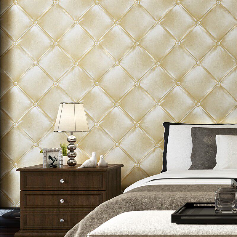 Стенка из искусственной кожи у изголовья кровати привлекает внимание и привлекает внимание. Обои с классическим эффектом Честерфилда источают роскошную элегантность и поэтому пользуются особой популярностью.