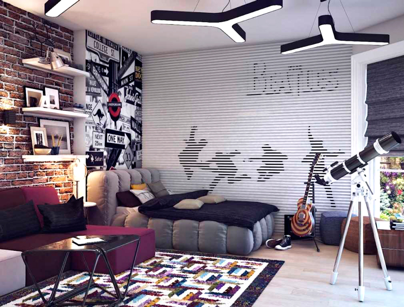 Не бойтесь экспериментировать. Выбирайте интересные цвета и дизайн обоев. И тогда у вас получится создать очень красивый и уютные молодежный интерьер, находиться в котором будет одно удовольствие.