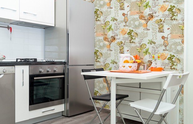 — Оформить отделку кухни моющимися обоями намного легче, чем другими материалами, например, керамической плиткой;