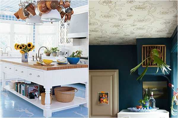 Обои на кухне на потолок — оправдан ли выбор?