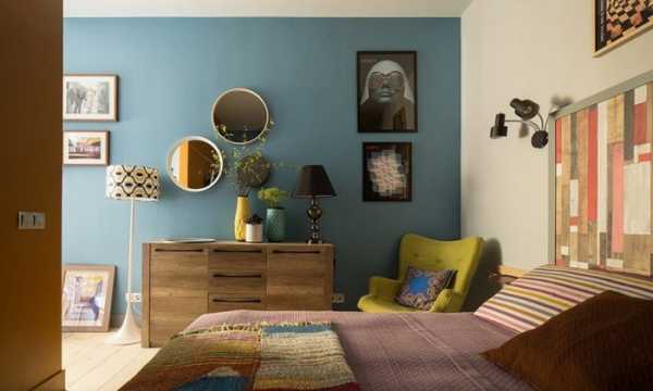 - можно оформить одну стену пестрыми цветными обоями, а остальные — однотонными, это позволит привнести изюминку в интерьер и не перегрузить стены яркими элементами;