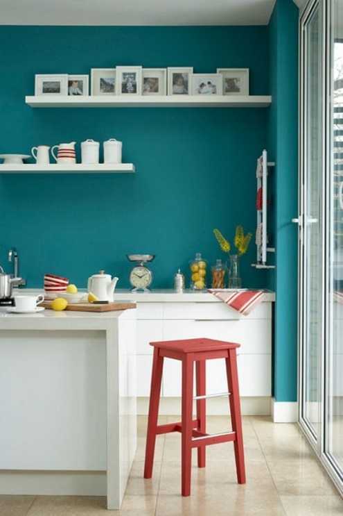 - Синий – это спокойствие и прохлада. С его помощью можно визуально увеличить помещение, “раздвинув” стены. Однако не стоит забывать, что это холодный цвет – его можно применять только в помещениях с достаточной большой площадью. Если маленькую комнату отделать синим, то вы получите обратный эффект – она станет темной и холодной;