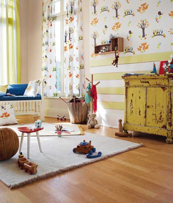 - Чередуйте обои с рисунком в виде вертикальной полосы. Их ширина может быть разной.