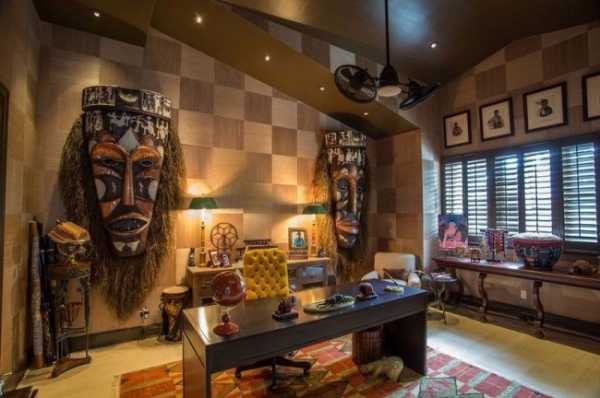 Бамбуковые обои как основное настенное покрытие в африканском этно-интерьере