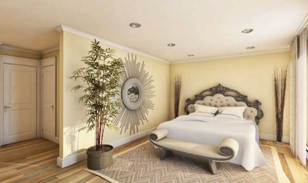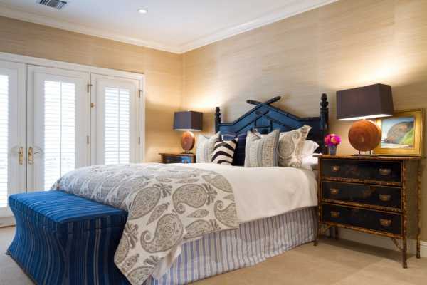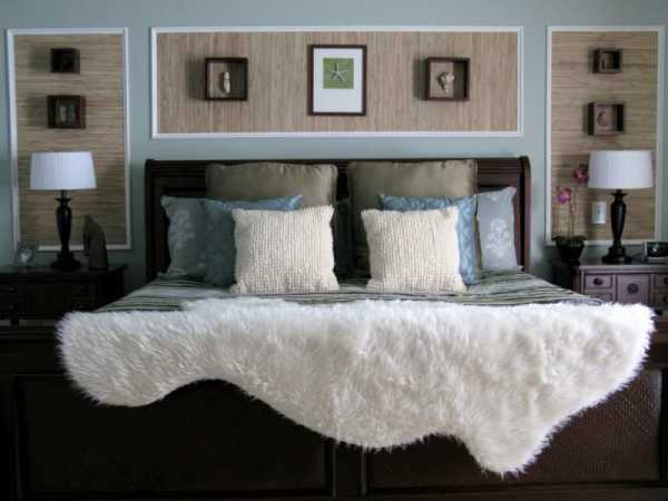 Бамбуковые обои в интерьере спальной комнаты предадут дополнительного тепла, пример на фото ниже: