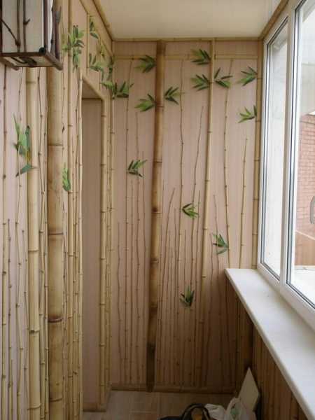 Обои из бамбуковых ламелей используются для отделки лоджий, и, фрагментарно, для ванных комнат. Их плюс — влагоустойчивость