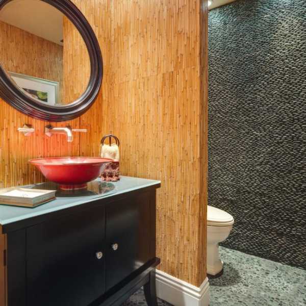 - В помещении с высокой влажностью. В этом случае натуральная отделка бамбуковыми обоями будет неразумной, так как она даже при наличии особых пропиток впитывает влагу, и полного срока службы натуральные обои не выдержат. В то же время нужный рисунок или принт создадут необходимое настроение, и позволят вам в определенной форме воплотить первоначальный замысел.
