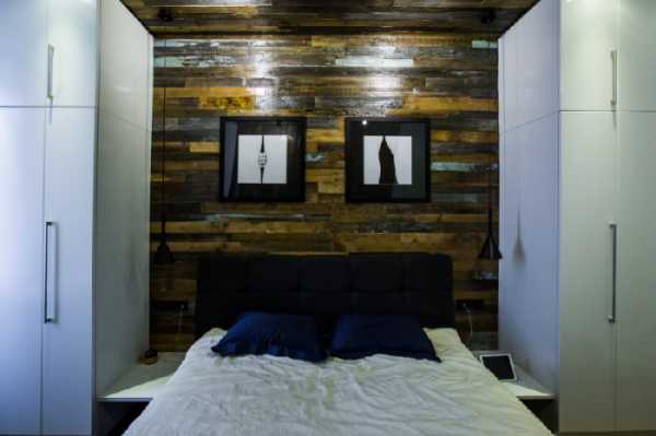 Темные оттенки дерева также могут применяться при оформлении спальни, но делать это нужно аккуратно. Ими нельзя полностью покрыть стены. Зато они могут быть великолепным акцентом. Идеальное место для таких обоев — область за кроватью. Можно сделать акцентную стену, оклеив всю ширину стены, а можно сделать небольшую по размеру зону (ширина как 2 рулона) исключительно за кроватью.