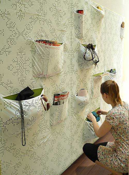 Идея создать практичные обои с карманами пришла в голову не одной женщине. Подобный проект осуществила и британский дизайнер Tracy Kendall.