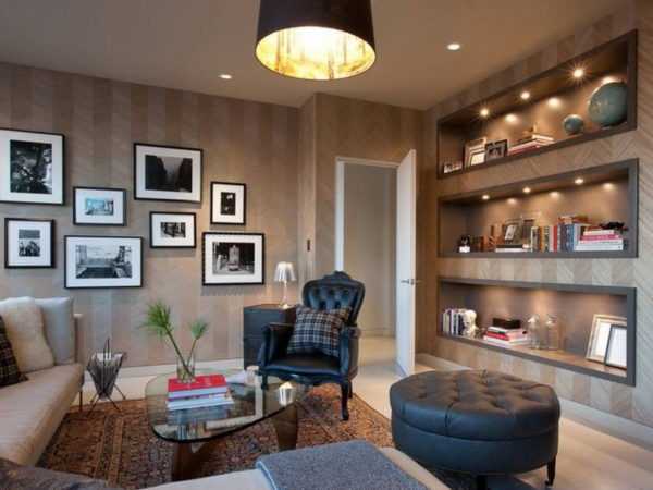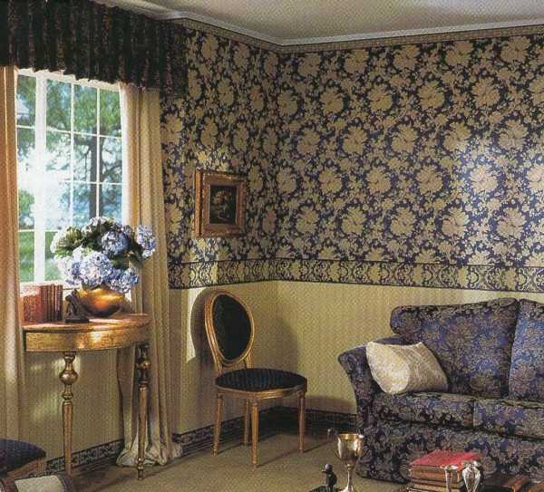 Обои в интерьере гостиной и их комбинирование — реальные фото примеров
