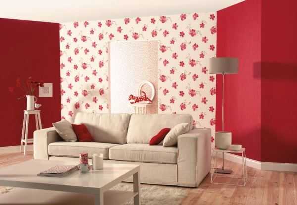 Для комбинирования в гостиной чаще всего используют одинаковые цвета обоев