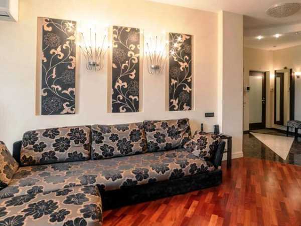 Нередко описываемый прием используется в целях экономии на покупке дорогостоящих рулонов. Хорошо известно, что крупные магазины предоставляют огромные скидки на остатки. Скомбинировать их поможет детальное изучение уже имеющихся примеров и фото, которые напечатаны в данной статье. Подобные примеры – уникальная наглядная книга, помогающая осваивать азы сочетаемости цветов, используемых при оформлении залов гостиной. А следующий раздел легко станет настольной книгой для тех, кто мечтает получить инструкцию, к реализации уже готовых проектов.