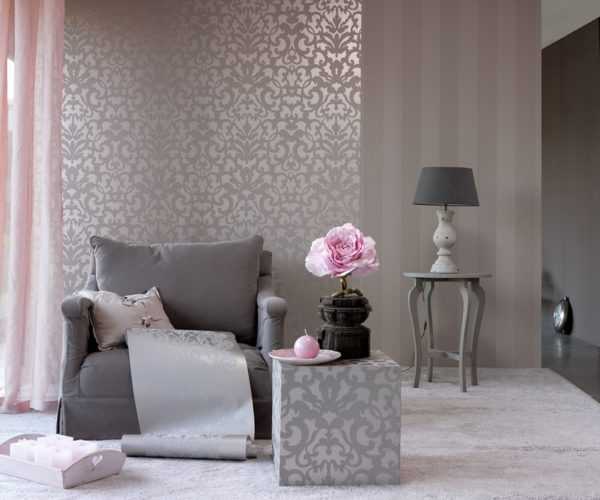 Контраст черного и белого цветов эффектно подчеркнет согласованность стилистики интерьера гостиной. Единственное условие: на соседней полосе должен быть нанесён точно такой же принт. Это создаст определённую гармонию в помещении. Удачным примером, подтверждающим этот прием, является сочетание светло-серого и розового цветов. Необходимо, чтобы используемые цвета перекликались между собой. Тогда вы получите комбинацию, подходящую для абсолютно любой гостиной. Основное требование — объемный и четкий рисунок, нанесенный на них.