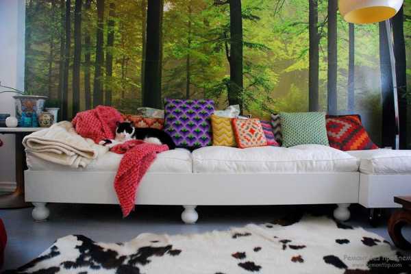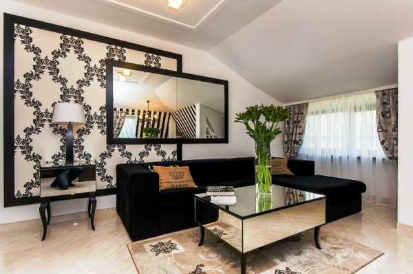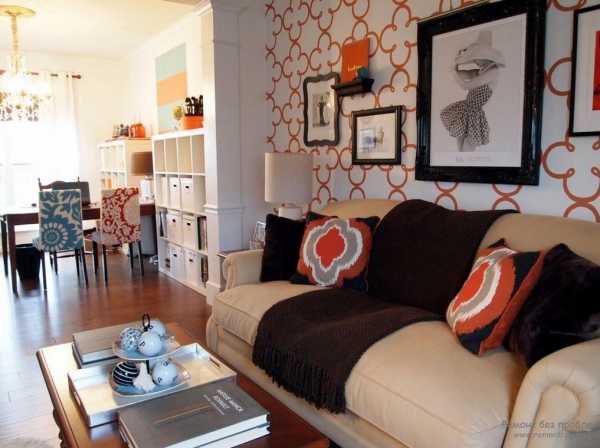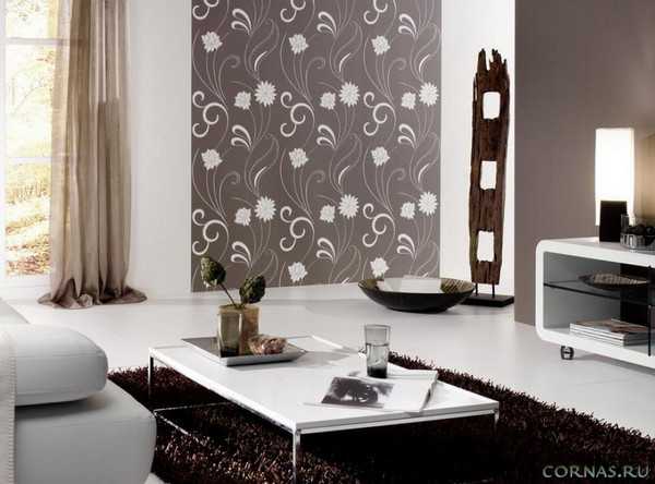 ΠΡΠΈ ΠΏΠΎΠΌΠΎΡΠΈ ΠΏΠΎΠΊΠ»Π΅ΠΉΠΊΠΈ ΡΠ°Π·Π½ΡΡ Π²ΠΈΠ΄ΠΎΠ² ΠΎΠ±ΠΎΠ΅Π² ΠΌΠΎΠΆΠ½ΠΎ Π² ΠΈΠ½ΡΠ΅ΡΡΠ΅ΡΠ΅ Π³ΠΎΡΡΠΈΠ½ΠΎΠΉ Π²ΡΠ΄Π΅Π»ΠΈΡΡ Π·ΠΎΠ½Ρ ΠΏΠΎΠ΄ ΡΠ΅Π»Π΅Π²ΠΈΠ·ΠΎΡ, Π·ΠΎΠ½Ρ Π·Π° Π΄ΠΈΠ²Π°Π½ΠΎΠΌ. ΠΡΠ΅Π½Ρ ΠΊΡΠ°ΡΠΈΠ²ΠΎ Π±ΡΠ΄ΡΡ Π²ΡΠ³Π»ΡΠ΄Π΅ΡΡ ΡΡΠΈ Π·ΠΎΠ½Ρ, Π΅ΡΠ»ΠΈ ΠΎΡΠ½ΠΎΠ²Π½ΠΎΠΉ ΡΠΎΠ½ Π³ΠΎΡΡΠΈΠ½ΠΎΠΉ ΠΏΠΎΠΊΠ»Π΅ΠΈΡΡ Π² ΠΎΠ΄Π½ΠΎΡΠΎΠ½Π½ΡΠ΅ ΠΎΠ±ΠΎΠΈ, Π° ΡΠ°ΠΌΡ Π·ΠΎΠ½Ρ Π²ΡΠ΄Π΅Π»ΠΈΡΡ ΠΏΡΠΈ ΠΏΠΎΠΌΠΎΡΠΈ ΠΊΠΎΠ½ΡΡΠ°ΡΡΠ½ΡΡ Π΄Π΅ΠΊΠΎΡΠΎΠ² ΠΈΠ»ΠΈ ΠΆΠ΅ ΠΏΡΠΈ ΠΏΠΎΠΌΠΎΡΠΈ ΠΊΠ°ΡΠ΅ΡΡΠ²Π΅Π½Π½ΡΡ ΠΎΠ±ΠΎΠ΅Π² Ρ ΠΊΡΠ°ΡΠΈΠ²ΡΠΌ ΠΎΡΠ½Π°ΠΌΠ΅Π½ΡΠΎΠΌ. Π’Π°ΠΊΠΈΠΌ ΠΎΠ±ΡΠ°Π·ΠΎΠΌ Π±ΡΠ΄Π΅ ΡΠΎΠ·Π΄Π°Π²Π°ΡΡΡΡ ΡΡΡΠ΅ΠΊΡ ΠΏΠ°Π½Π½ΠΎ, ΡΠ΅ΠΌ ΡΠ°ΠΌΡΠΌ Π³ΠΎΡΡΠΈΠ½Π°Ρ ΠΏΡΠΈΠΎΠ±ΡΠ΅ΡΠ΅Ρ Π°ΠΊΡΠ΅Π½Ρ, Π² ΠΈΡΠΎΠ³Π΅ Π΅Π΅ Π΄ΠΈΠ·Π°ΠΉΠ½ ΡΡΠ°Π½Π΅Ρ Π½Π° ΠΌΠ½ΠΎΠ³ΠΎ ΠΈΠ½ΡΠ΅ΡΠ΅ΡΠ½Π΅Π΅ ΠΈ ΡΠΎΠ²ΡΠ΅ΠΌΠ΅Π½Π½Π΅Π΅.