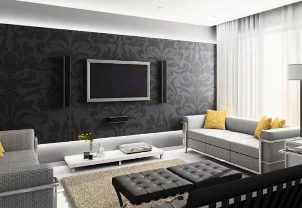 Самый простой способ выполнения данного приема – покрытие фотообоями. Реальные фото, цветочные рисунки или теневые проекции преобразят пространство гостиной и зададут стилевую ось интерьеру.