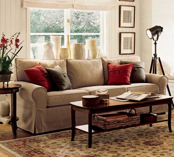 Комнату для принятия гостей многие традиционно создают в бежевой гамме. Дизайнеры рекомендуют для создания ярких акцентов и приданию помещения стиля использоваться дополнительные декоративные элементы, как: