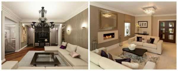 Если вы любите все делать сами, без помощи специалистов, то стоит начать с просмотра фото примеров дизайна различных интерьеров гостиной с комбинированными обоями.
