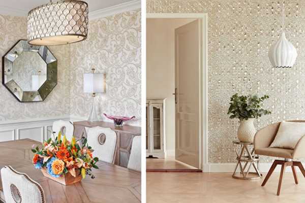 Вставки и панно из обоев с узорами придадут помещению дополнительной торжественности.