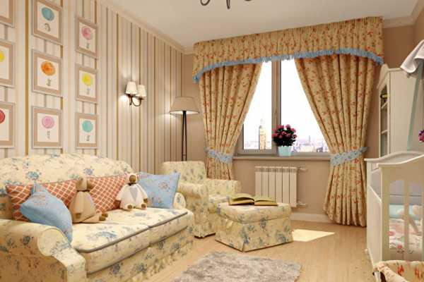 - Текстильные придадут комнате роскошь и элегантность. Комбинация бежевого цвета с флористическим рисунком подчеркнет классический стиль помещения. Но при этом они не устойчивы к любым видам загрязнений.
