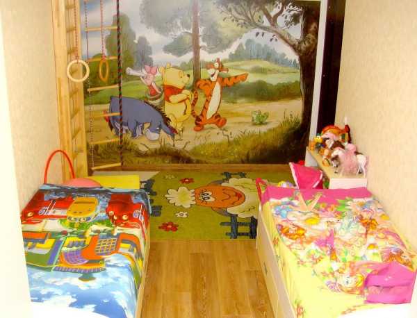 - 2-4 года. В интерьер добавляются чистые природные оттенки зеленого, голубого, желтого. Для спокойных детей подбираются яркие краски, для активных – пастельная цветовая гамма. В качестве декоративных элементов используются изображения сказочных героев.