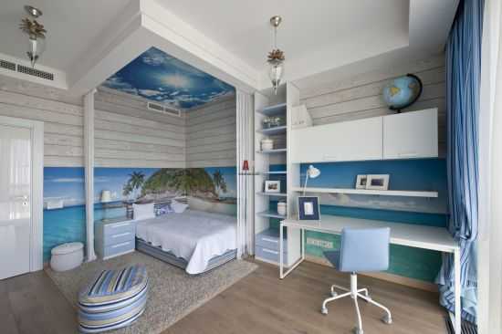 - 9-11 лет. Допустимо добавление тематики. Примерно с 10 лет у мальчиков появляются интересы, поэтому большой популярностью при формировании интерьера пользуются: морская, спортивная, историческая и другие темы.