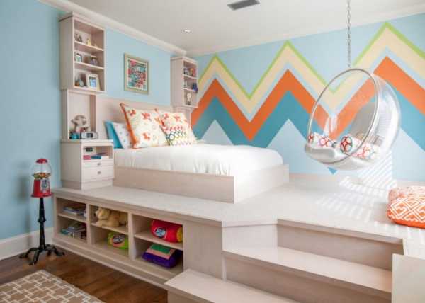 - четких узоров, дублирующихся на всех стенах, фото которых переполнена сеть. Если увернуться от таких рисунков никак не получается, то лучше оформить ими лишь одну из стен, оставив остальные для более спокойных тонов. Касается это правило детских всех возрастов, включая спальню для подростка;