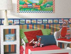 Горизонтальное зонирование комнаты делают при помощи специальных бордюров светлого цвета, либо обойных бордюров с подходящим рисунком. Такое декорирование выигрышно смотрится в детских комнатах для мальчиков любых возрастов. В нижней зоне обычно располагаются предметы мебели, тумбочки и шкафы, а верхняя зона служит для картин, фотографий, настенных светильников.