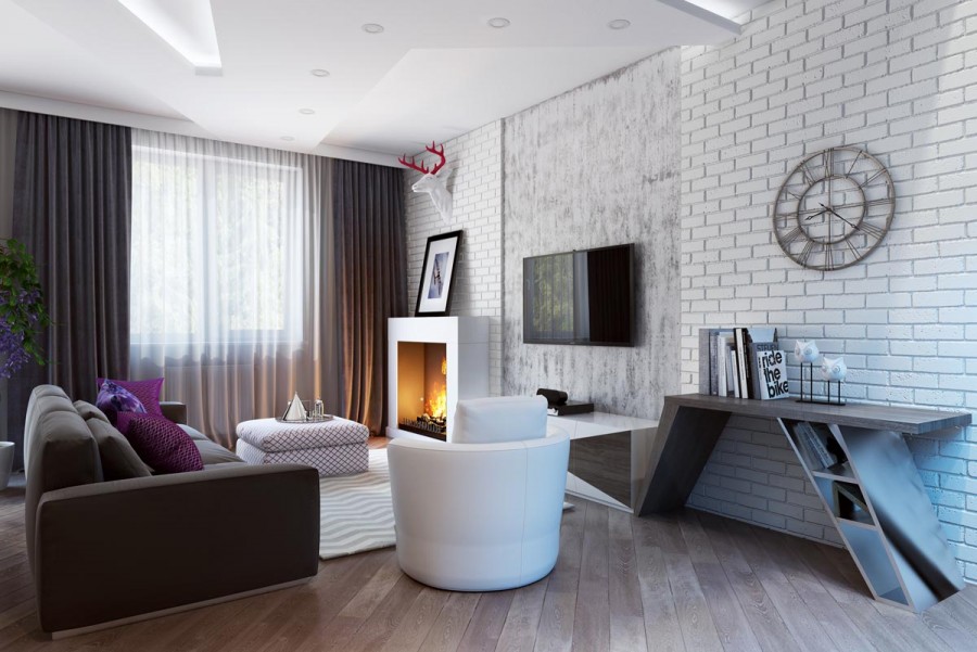 Это может быть нежный пепельный, или насыщенный графитовый. При оформлении гостиной, не стоит увлекаться темными оттенками серого. Иначе в помещении будет мрачная, гнетущая атмосфера. В этом случае оформить графитовым можно одну стену, например, ту, где располагается телевизор. В этом случае помещение визуально вытянется, станет просторнее.