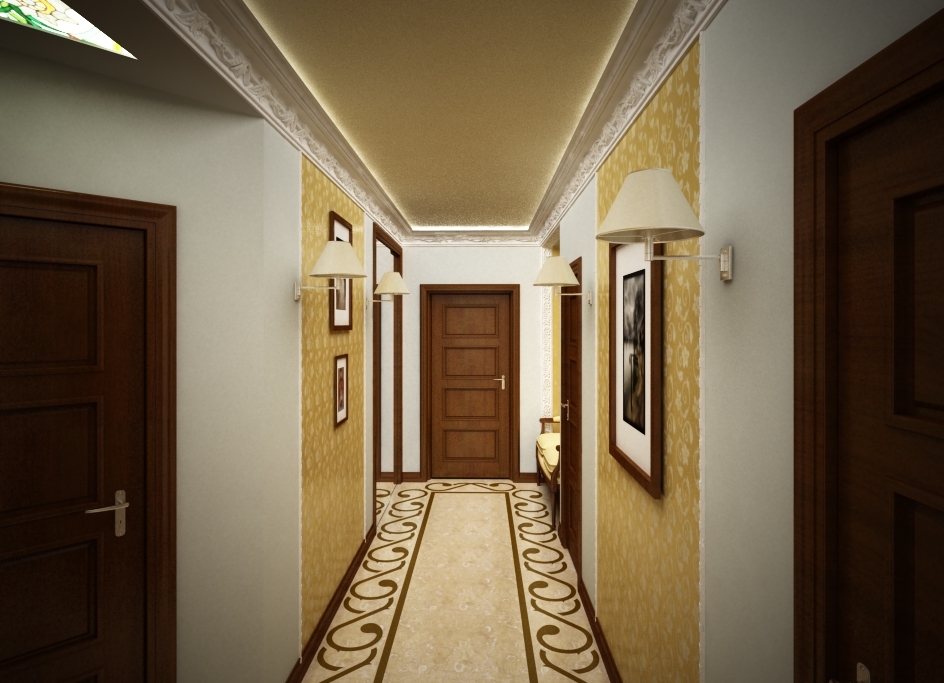 Большие размеры орнамента допустимы, если в маленьком и узком помещении сочетаются узкий коридор и очень высокие потолки – в этом случае крупный рисунок может компенсировать лишние сантиметры и сделать комнату более аккуратным и уютным.