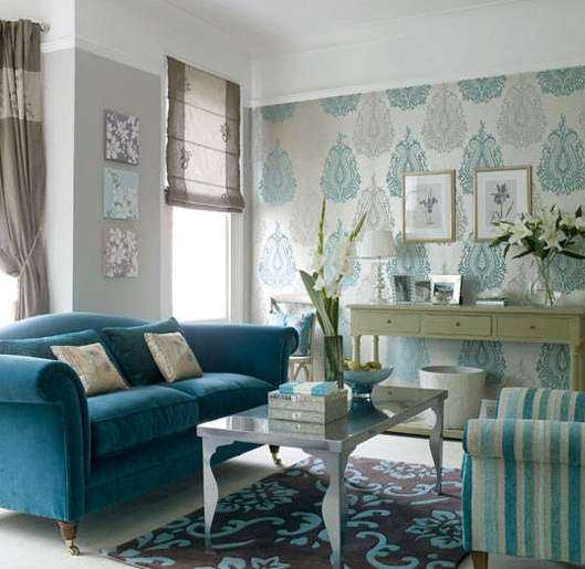 Мелкий или крупный узор? Любой! Однако светлые обои с почти незаметным рисунком подойдут для оклейки всех стен в квартире. Что же до полотен с крупным орнаментом, то тут стоит действовать иначе. Орнаментированные цветные обои используют только для одной стены в любом из помещений, тем самым визуально её «отодвигая».