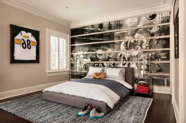 Различные увлечения могут находить отражение в индивидуальном дизайне спальни, в том числе спортивные предпочтения.