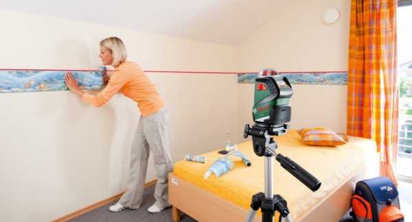 На некоторых обоях имеется узор с горизонтальными направляющими, по которым нужно ориентироваться. Отсутствие параллели между обрамлением и основным рисунком стены может быть очень заметным и негативно сказаться на визуальном восприятии дизайна.