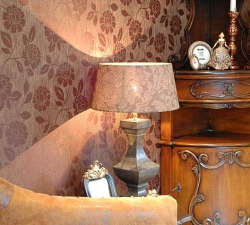 Велюр отличается привлекательным внешним видом. Такие обои сравнивают с бархатом, гобеленом. Добившись определенной игры света, удается создать привлекательный интерьер. Однако, такие обои отличаются неустойчивостью перед механическими повреждениями и нуждаются в постоянном и щепетильном уходе.