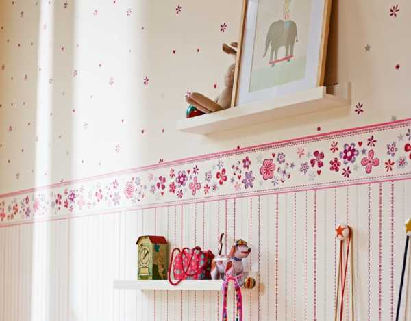 Отлично смотрятся бордюры, наклеенные горизонтально на расстоянии чуть ниже половины стены