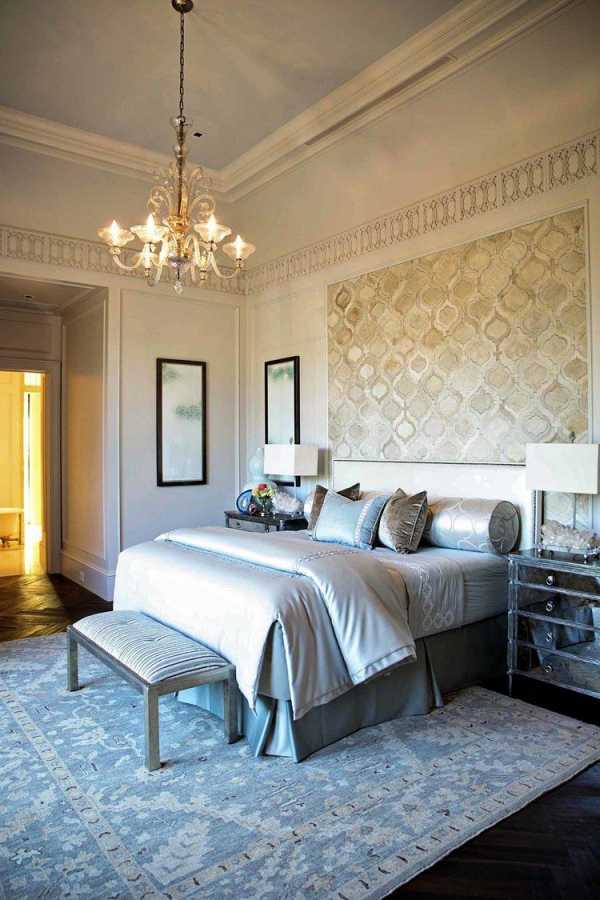 Элегантное пастельное сочетание обоев и бордюра в спальне