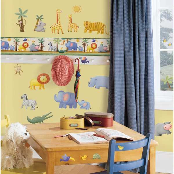 На бордюре в детской «живут» львы, зебры и слоны