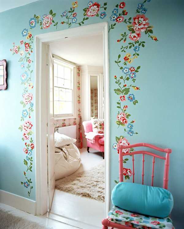 Совет! Широкий бордюр, расположенный по низу стен, придаст комнате классическую окраску. Очень красиво смотрятся бордюры из цветов. Тогда вы можете создать и имитацию луга, и ажурную вязь из крупных цветов на стене.