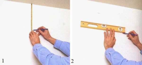 Вам понадобятся горизонтальный уровень, линейка или шнурок и карандаш