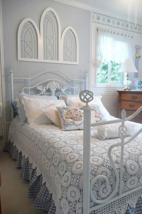 Окно в спальне визуально выделено бордюром нежной расцветки